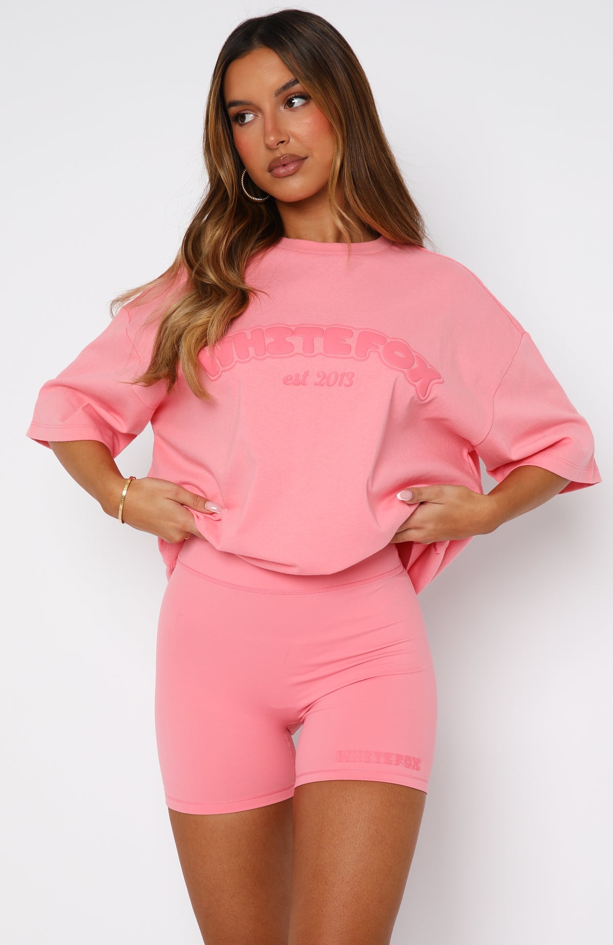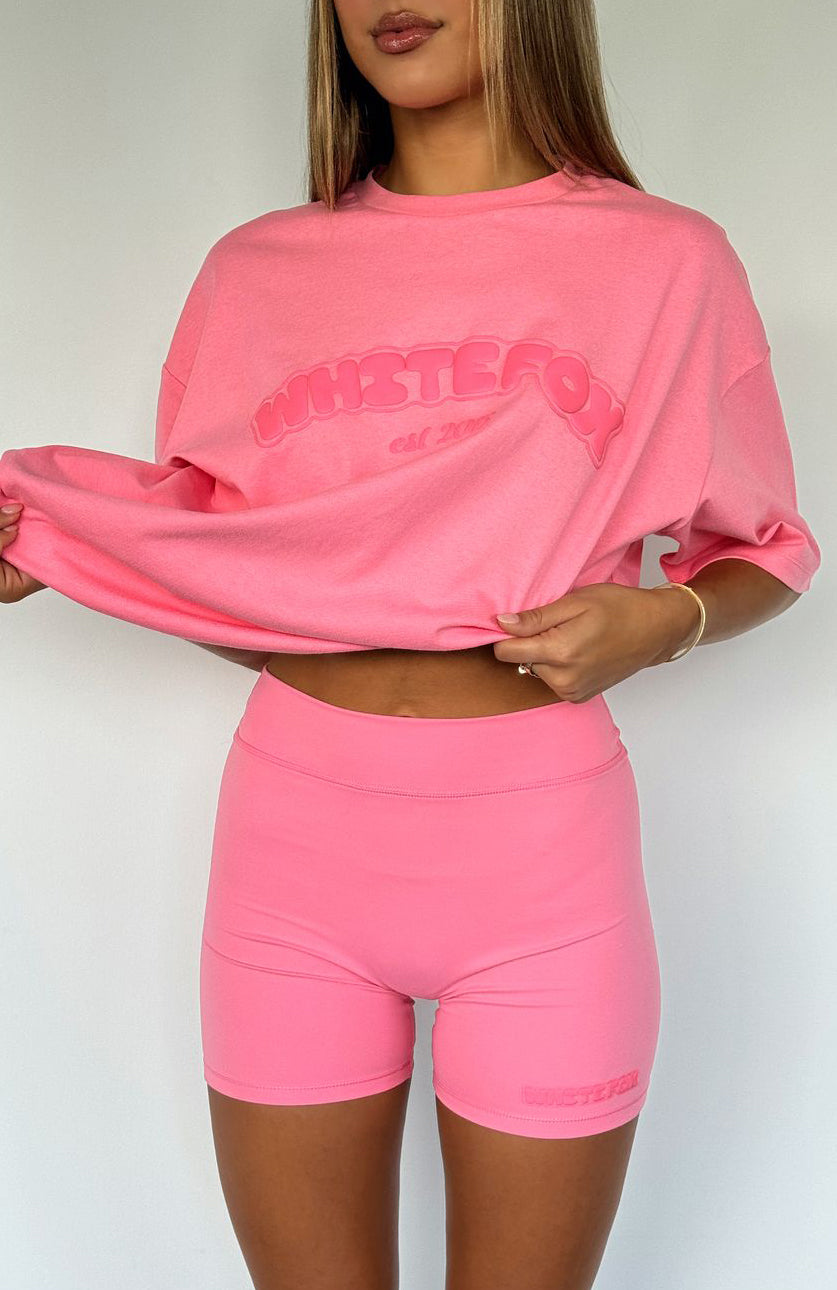 Slip into the Don't Even Try Bike Shorts in Melon for the perfect combo of cute and cosy! Features a thick waistband, signature puff print White Fox text side front and stretch fabrication for an easy slip on and off. Feel you best by pairing with the matching Don't Even Try Oversized Tee in Melon or Don't Even Try Oversized Hoodie in Melon for colder days!