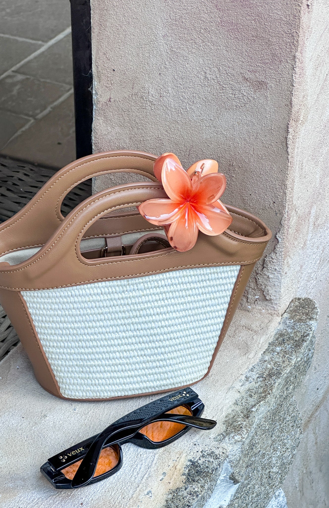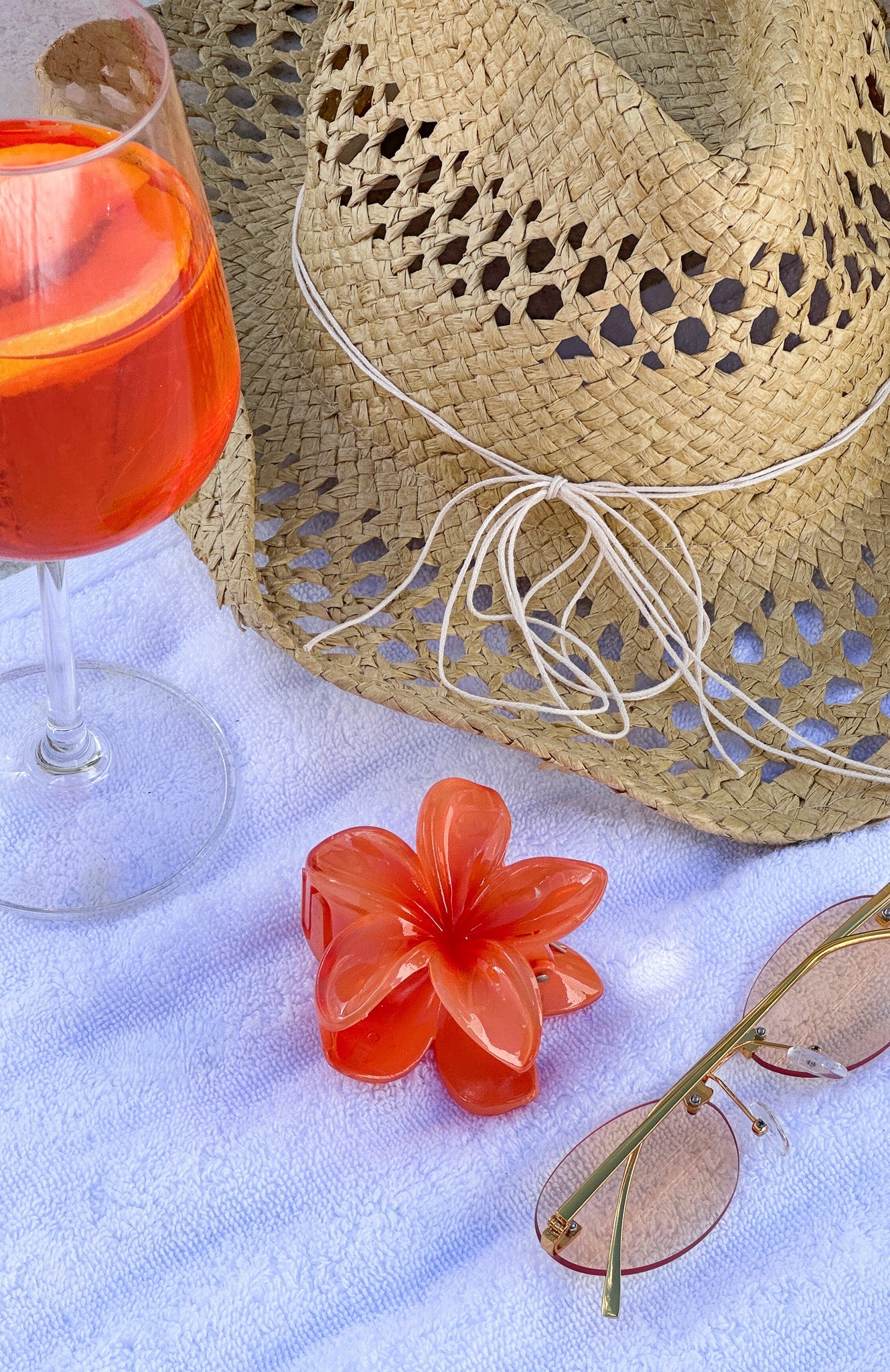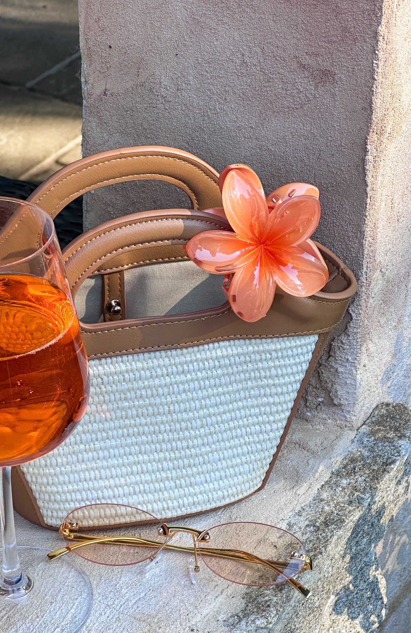 Your go to summer hair clip has arrived! The Floral Charm Hair Clip in Peach features an inner claw to hold hair firmly, cute flower design and easy spring closure. Tie back those salty locks and pair with any White Fox bikini for the ultimate beach babe look.