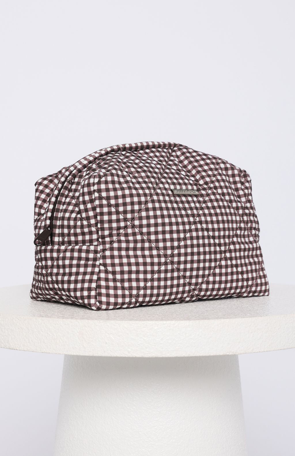 The cosmetic bag you didn't know you needed. Keep your beauty products snug and organised with the Getting Ready Cosmetic Bag in Choc Gingham. Featuring zipper closure, cotton and quilted case and White Fox logo centre front. An essential for your everyday. We're obsessed!