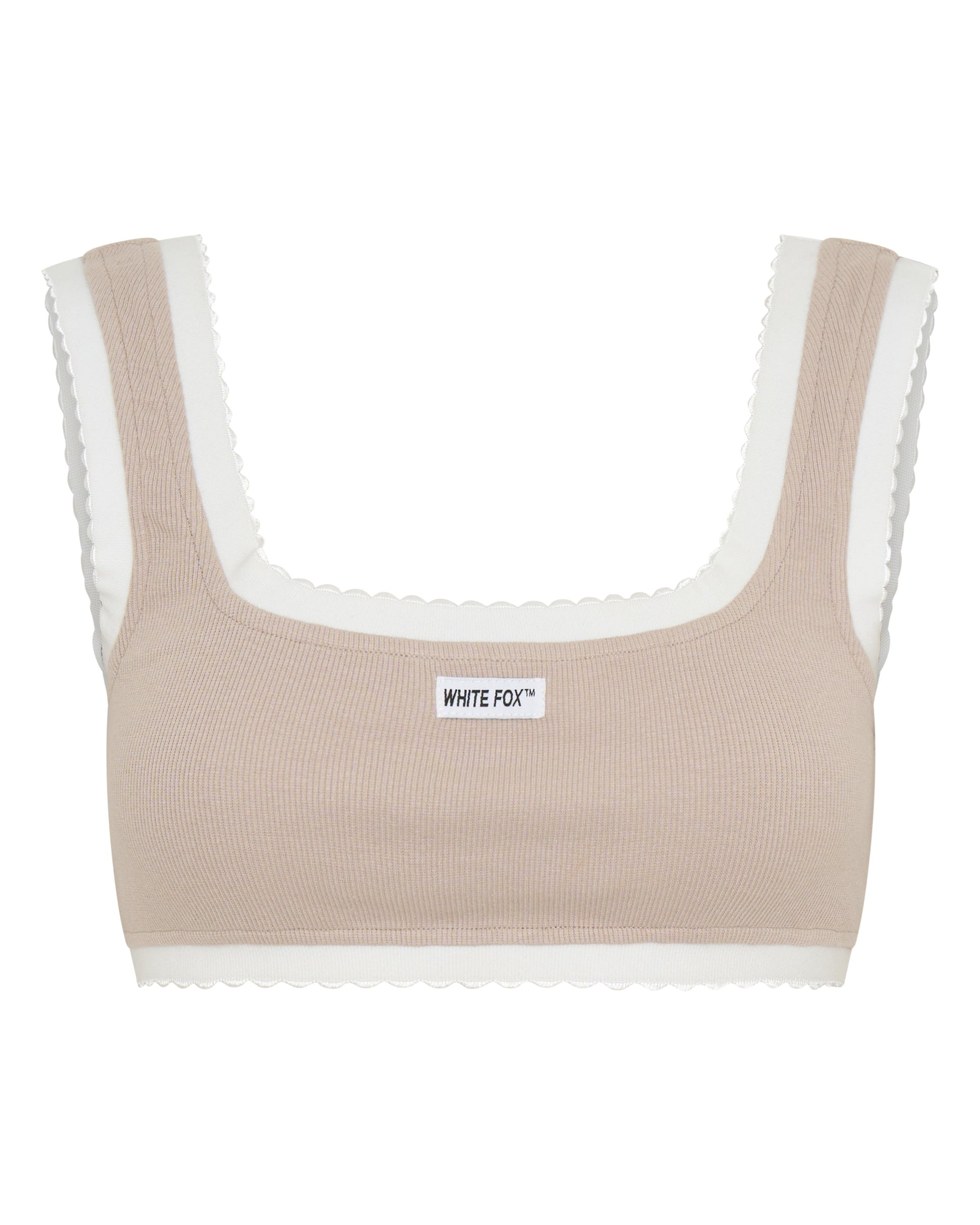The Got Carried Away Crop in Moon is designed for our sun-seeking babes! Featuring thick shoulder straps, a square neckline, ultra cropped length, lettuce hem detailing, contrast colour-way and centre front White Fox logo. Keep it cool and casual with the matching Got Carried Away Booty Shorts!