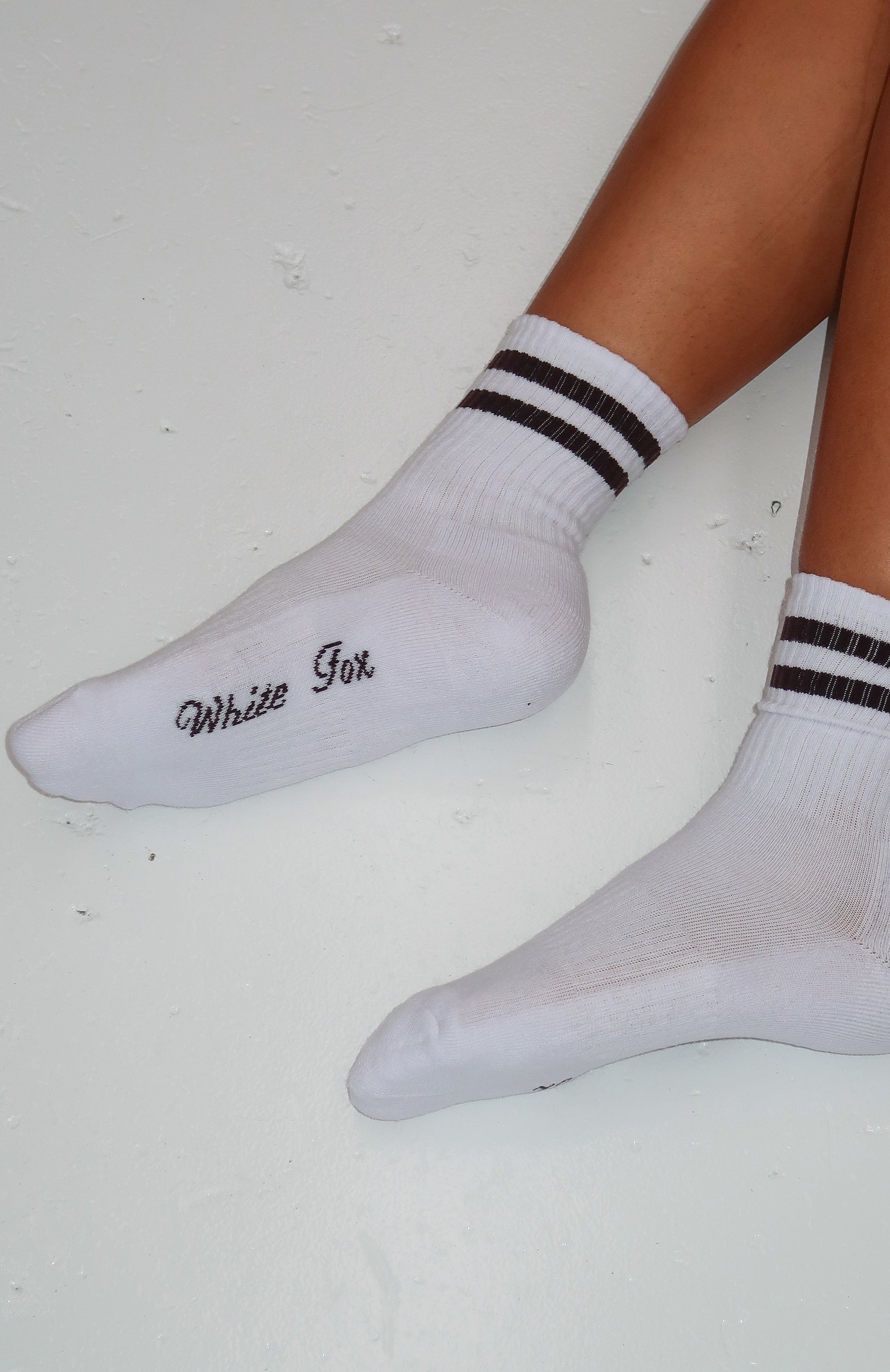 Your hot girl walk outfit isn't complete without the Grounded Socks in White/Dark Chocolate! These cushioned crew socks feature embroidered WF Logo with contrast colour detailing and ribbed ankle cuffs and arch band.