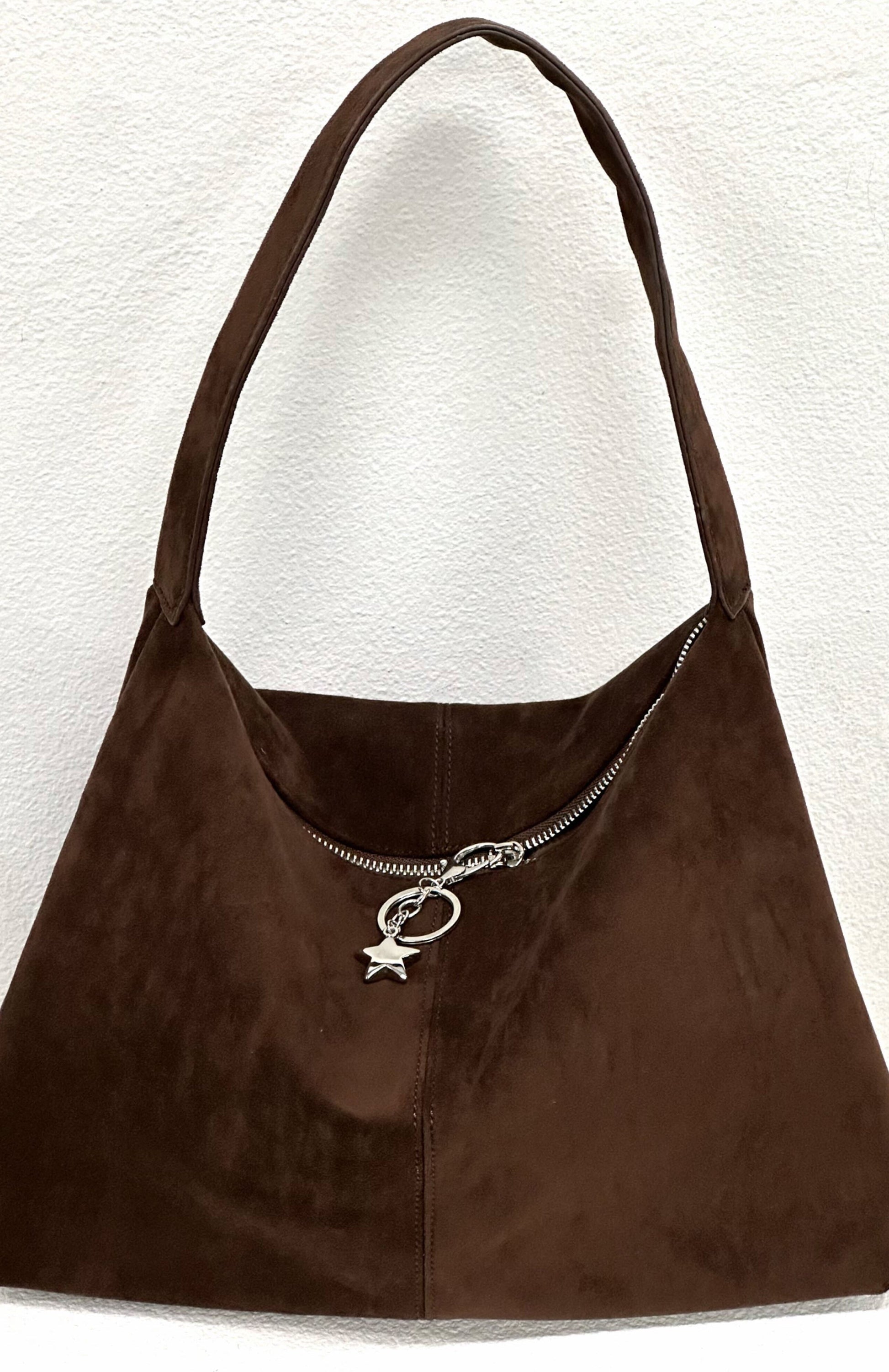 Add a touch of fun to your outfit with the Hadley Shoulder Bag in Chocolate. Features shoulder strap, zipper closure with sliver star charm and internal pocket. Its sleek design and perfect size make it your go-to companion for day-to-night adventures.