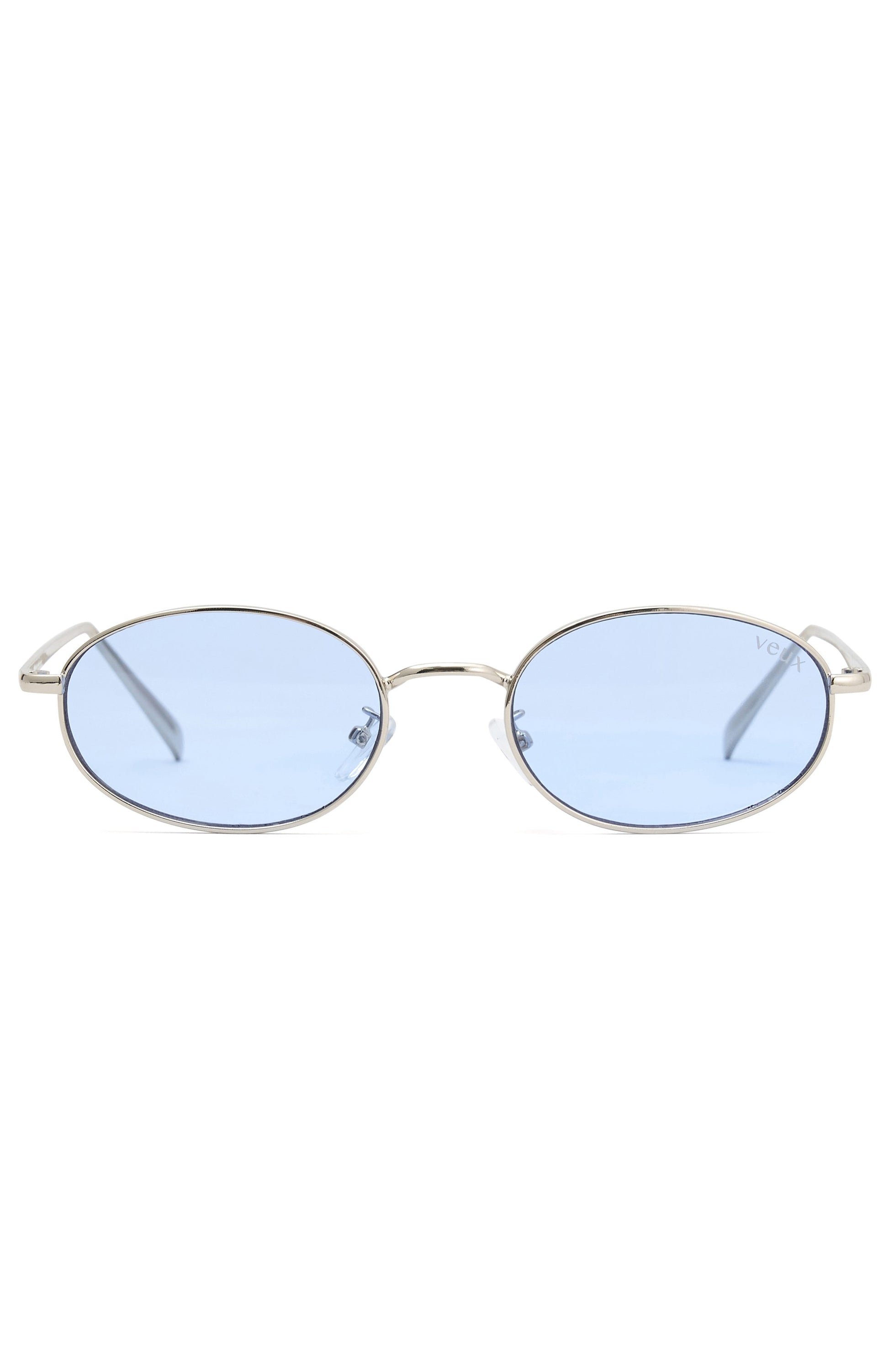 Nail your summer look in the Kora Sunglasses Silver/Blue. Features a chic, rounded frame with tinted lenses.