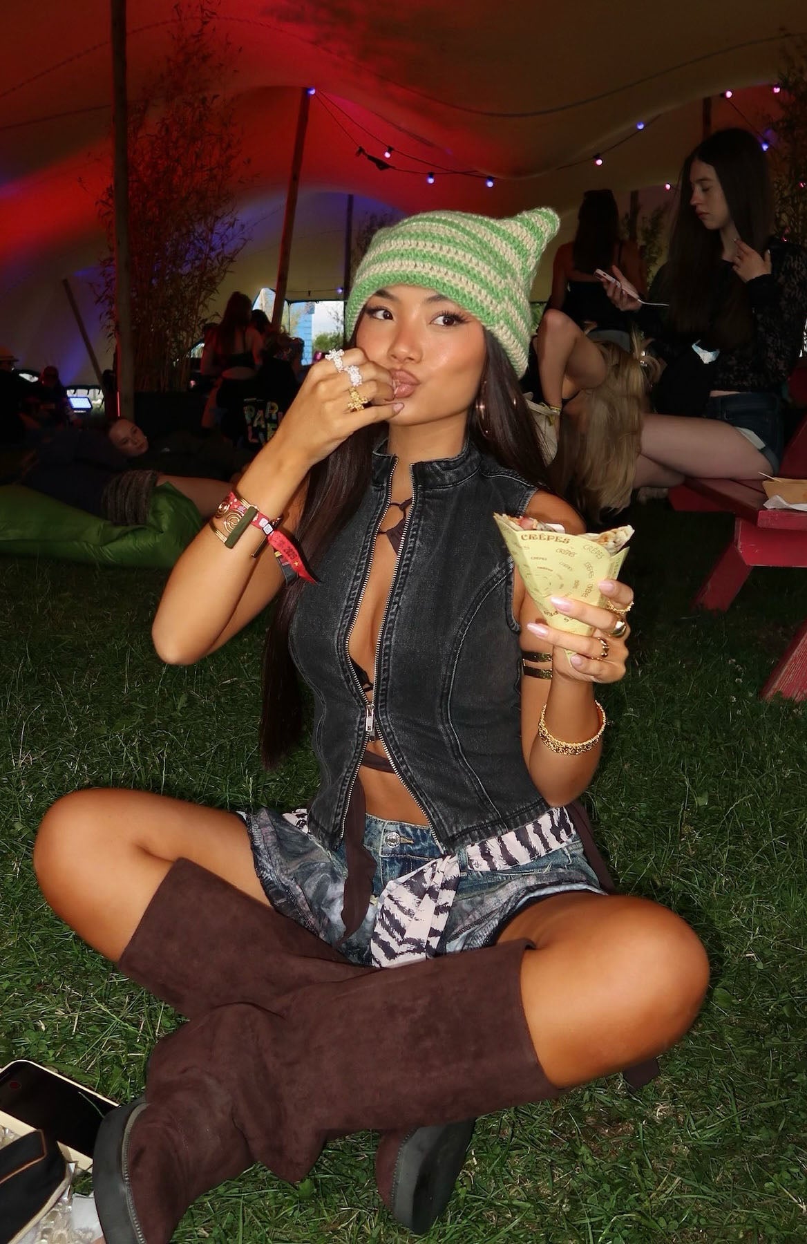 Add some edge to your wardrobe with the Leah Denim Vest in Black Acid! Features high neckline, sleeveless, two way zipper centre front and side panel design for a more structured fit. Style this look to a tee with the matching Softly Spoken Denim Shorts in Black Acid and knee high boots!