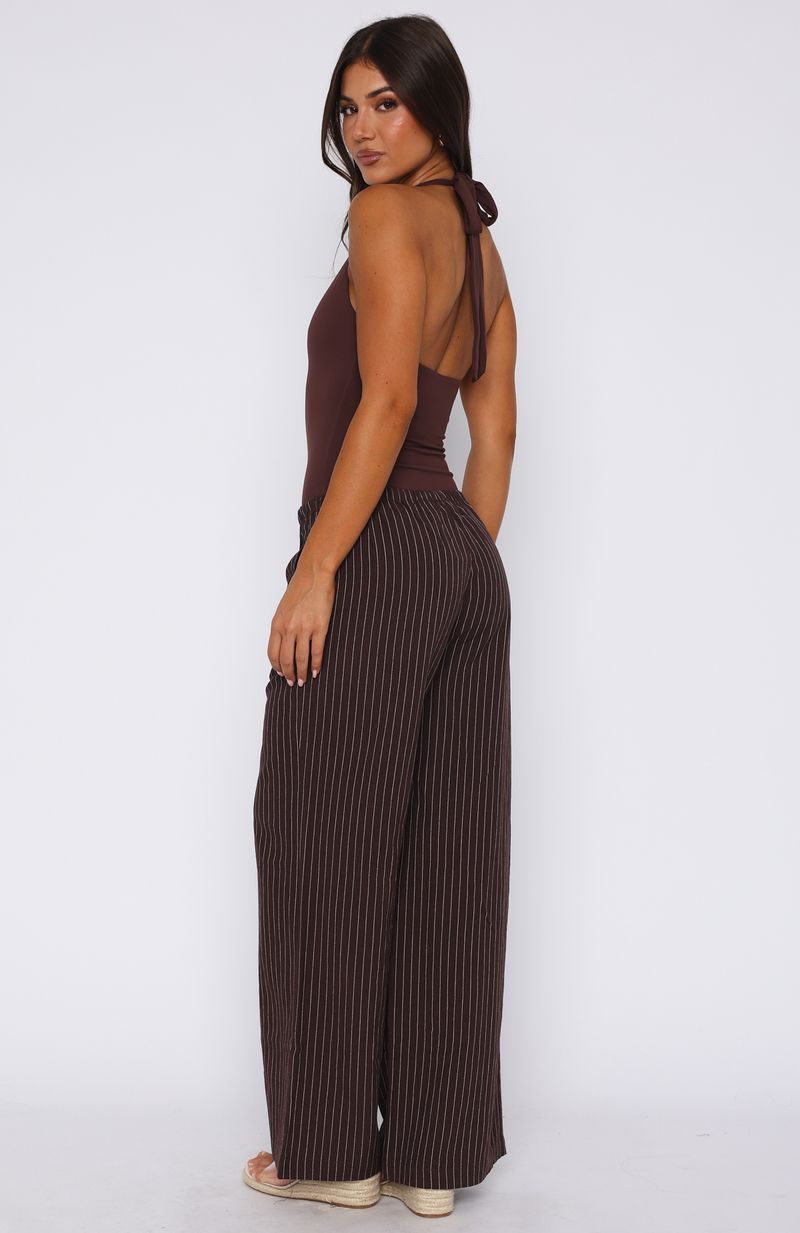 Slip into the Lost Your Chance Pants in Chocolate and let your style do the talking! Features a thin elasticated waistband with drawstring tie and fine pinstripe pattern. Complete the look with a basic tank, sandals and sunnies for the ultimate weekend fit!