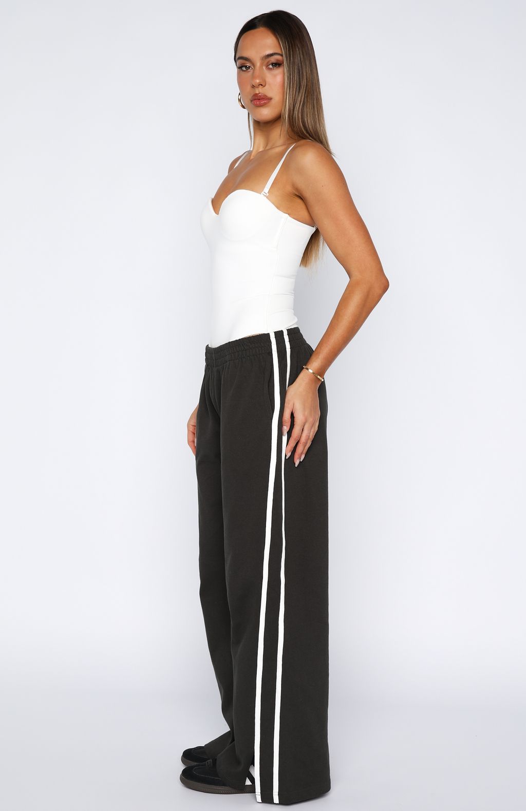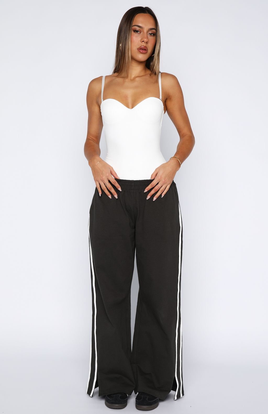 You asked we delivered! Introducing your newest fav pants, the Make Me Promises Pants in Charcoal. Designed with a thick elasticated waistband, side pockets, double stripe detailing down the side, split at bottom hem, unlined material and relaxed fit. Finished with a double stripe detailing down the side for sporty vibe. Complete the look a basic tank and your fav sneakers for the perfect weekend casual fit!