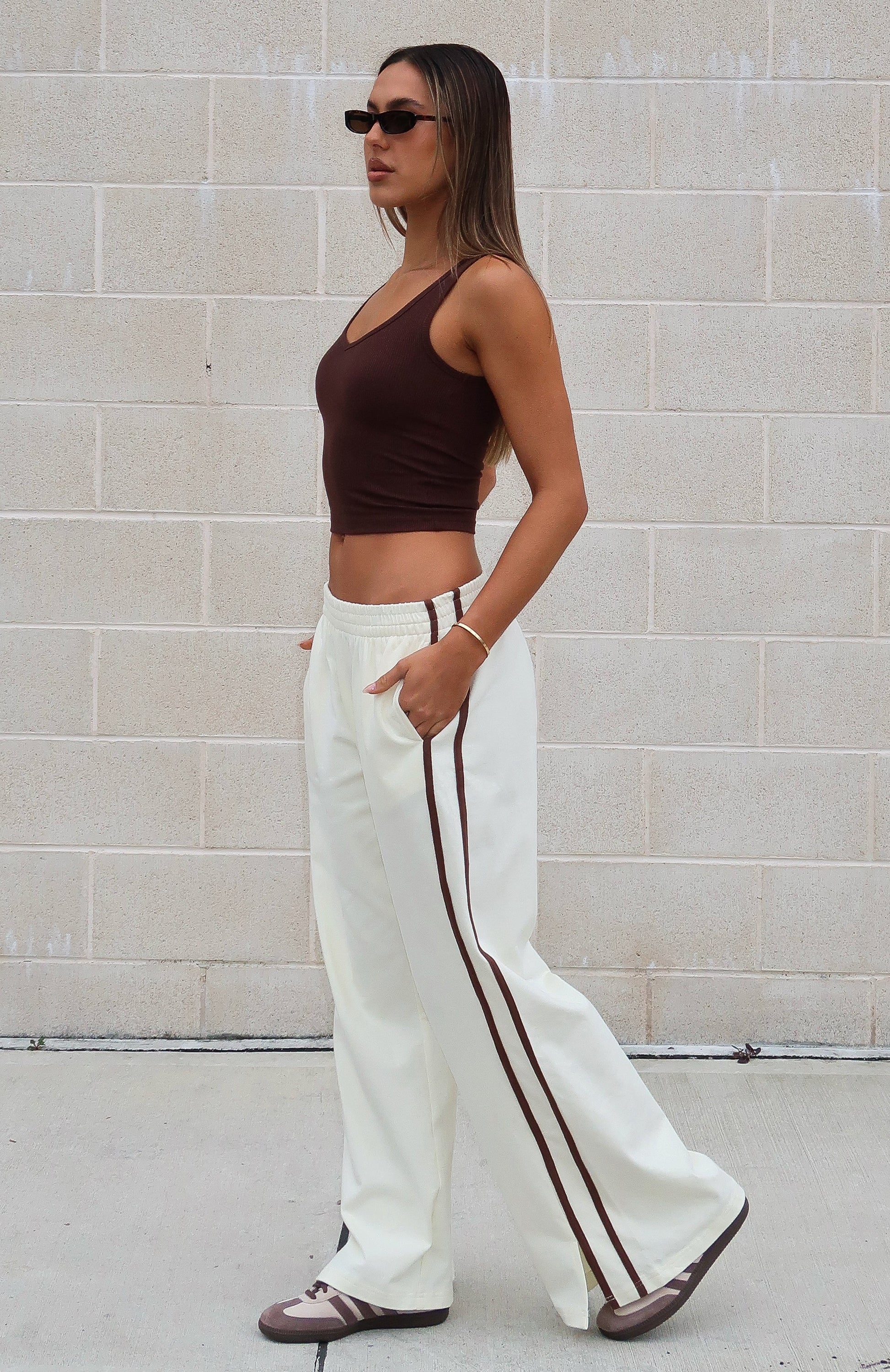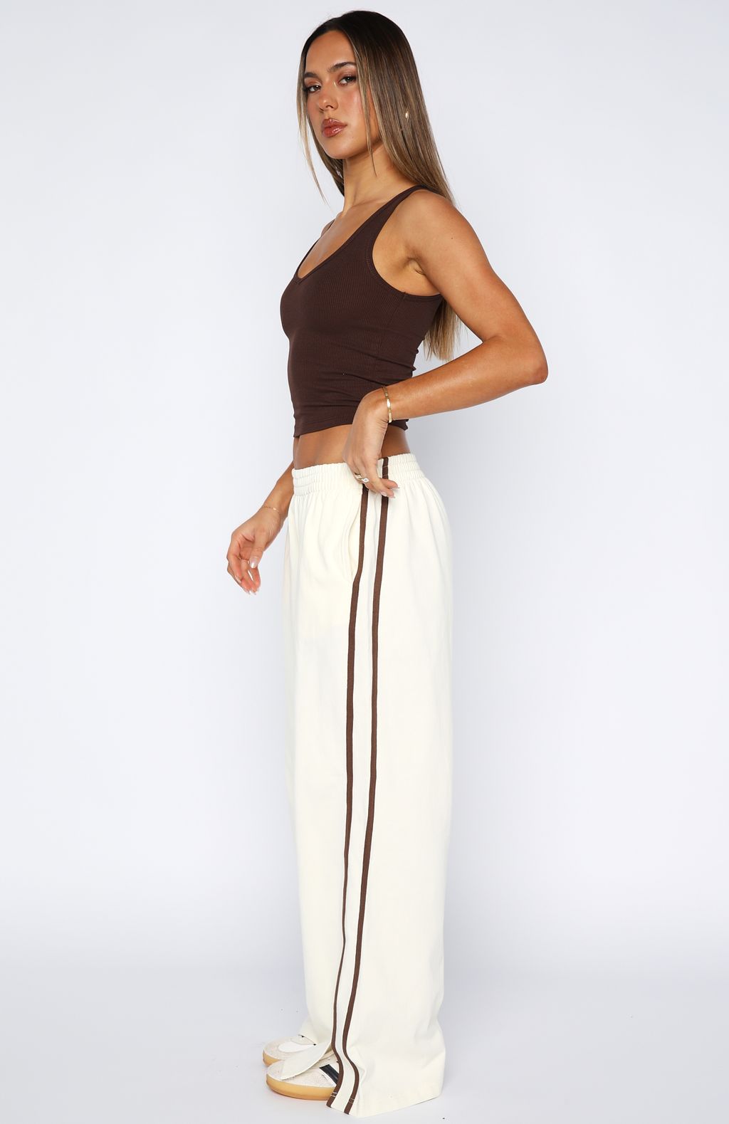You asked we delivered! Introducing your newest fav pants, the Make Me Promises Pants in Cream. Designed with a thick elasticated waistband, side pockets, double stripe detailing down the side, split on pant hem, unlined material and relaxed fit. Finished with a double stripe detailing down the side for sporty vibe. Complete the look a basic tank and your fav sneakers for the perfect weekend casual fit!
