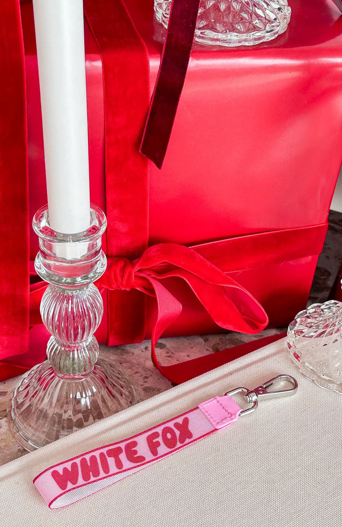 Babe, get your hands on our newest The Next Level Strap Keychain Pink/Red. The perfect addition to small accessories or attach it to your keys.