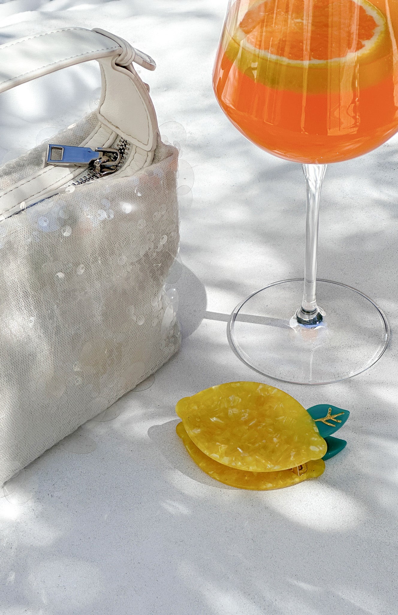 Your new beach essential for those hot days! The Piper Hair Clip Lemon features an inner claw to hold hair firmly, unique design and easy spring closure.
