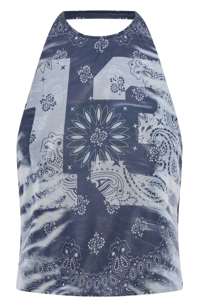 New obsession unlocked with the Rooftop Dreamer Top Thirteenth Dimension. Featuring a halter neck design, thick tie-up straps, sheer mesh lined fabric, backless and with a detailed blue print. Best paired with the matching Eclipse Heart Mini Skirt Thirteenth Dimension!