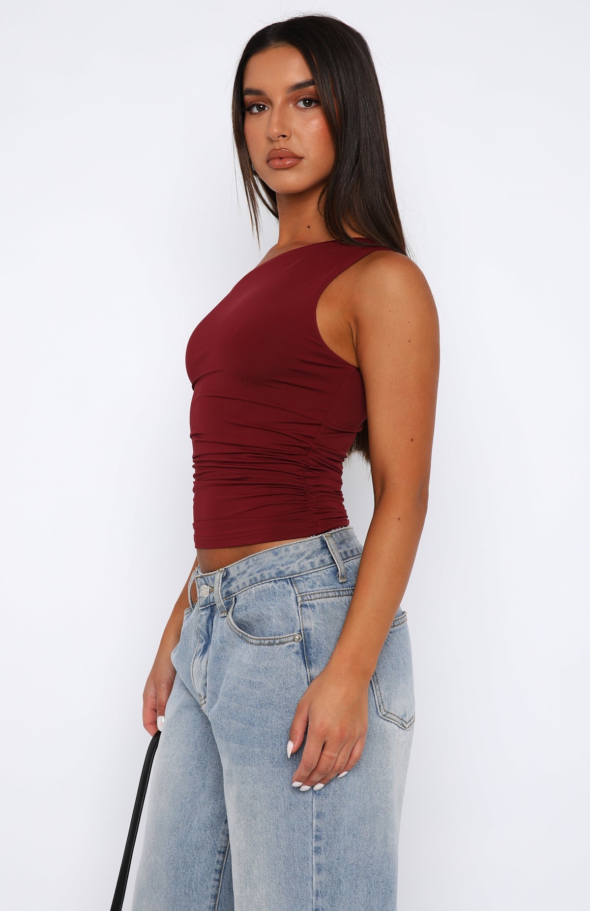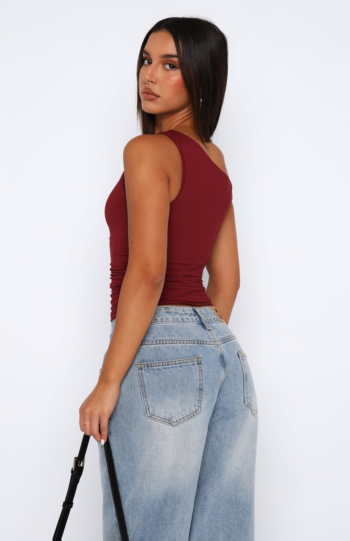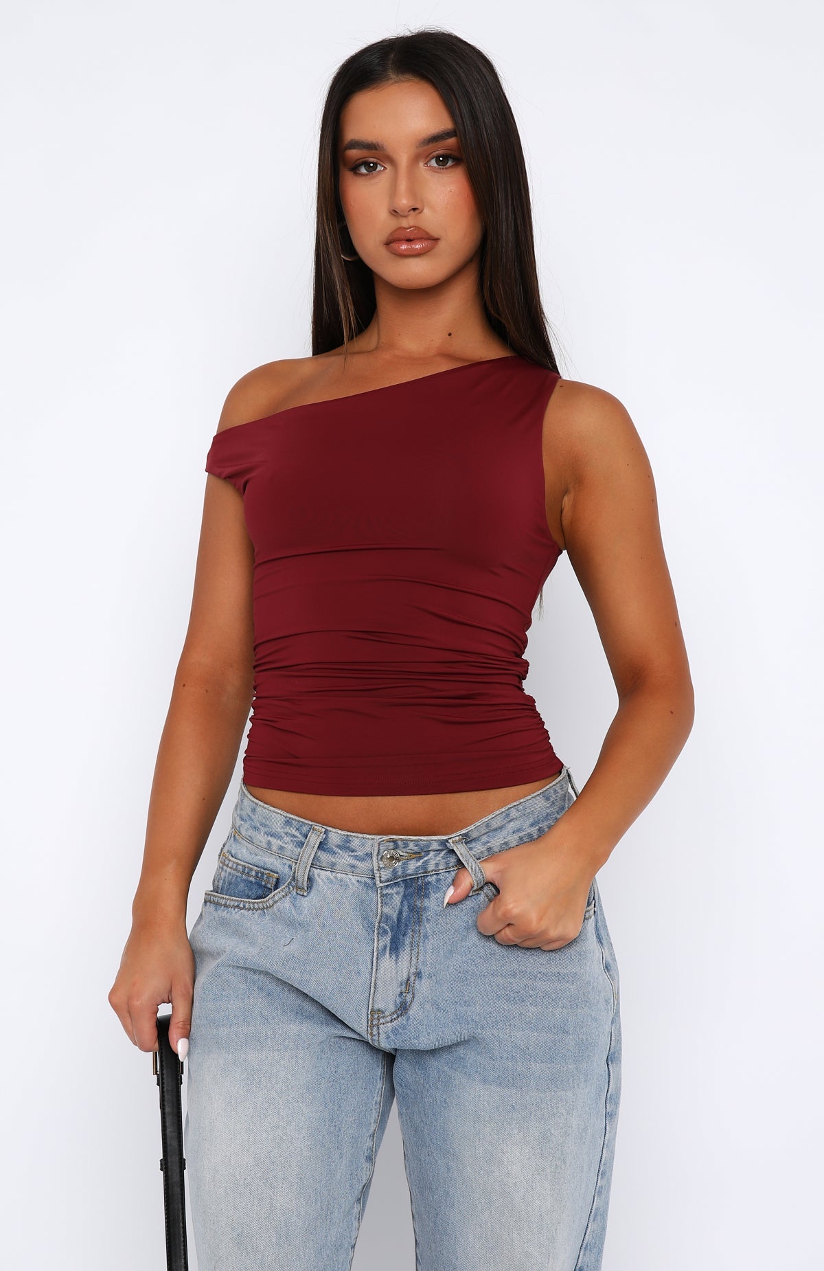 Ruched detailing is our favourite trend right now. The Stay With You Top Wine features a one shoulder design, ruched side design, slinky and soft fabric made to slip on with ease. The Stay With You Top in Wine is an elevated basic your wardrobe is calling out for!