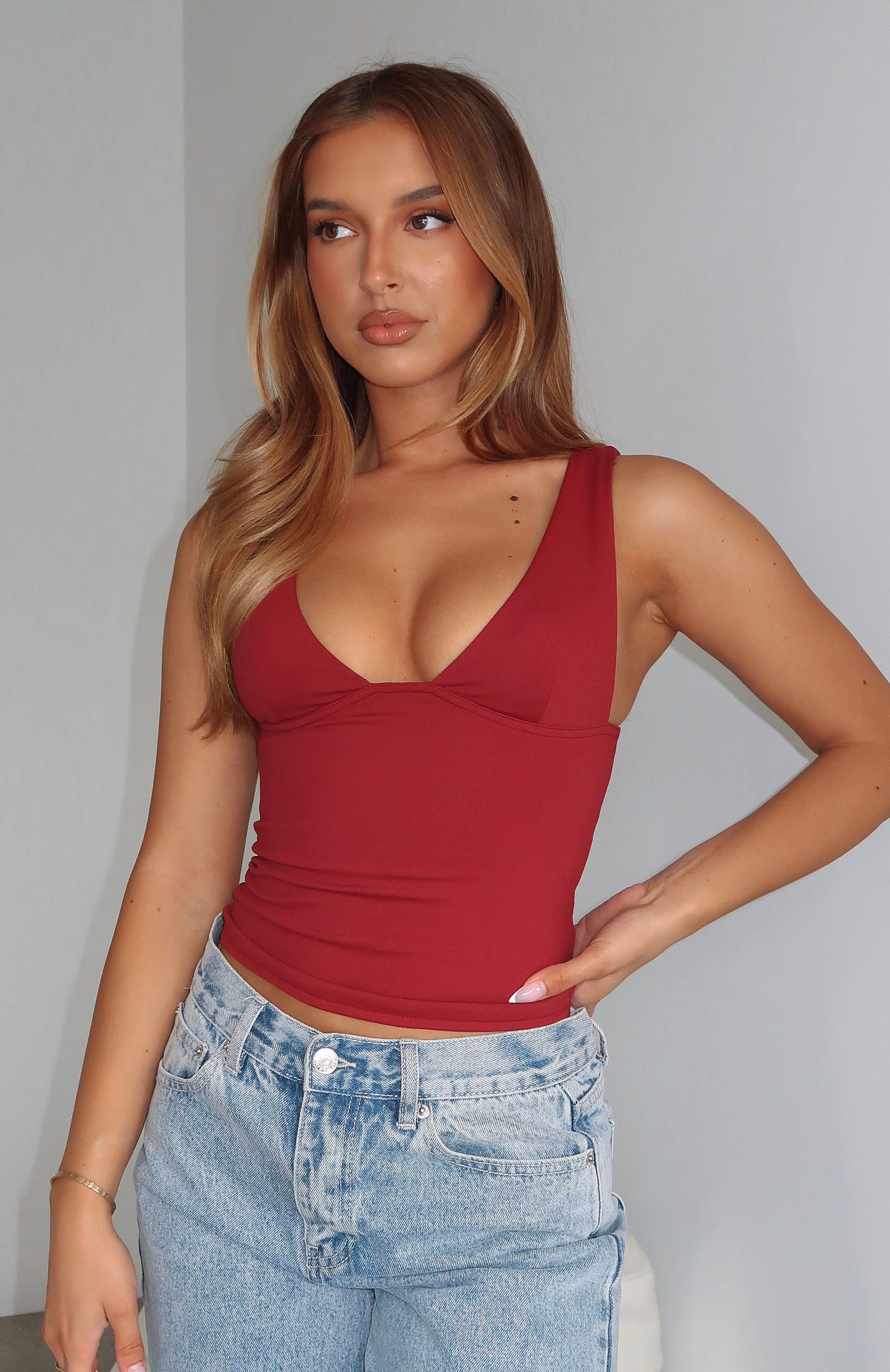 It's your moment, own it in the Taking Up Space Top Wine. Features thick shoulder straps, cropped length, low plunge neckline, lined and soft, stretch material for an easy slip on style. Style with your favourite pair of jeans for a capsule wardrobe staple.