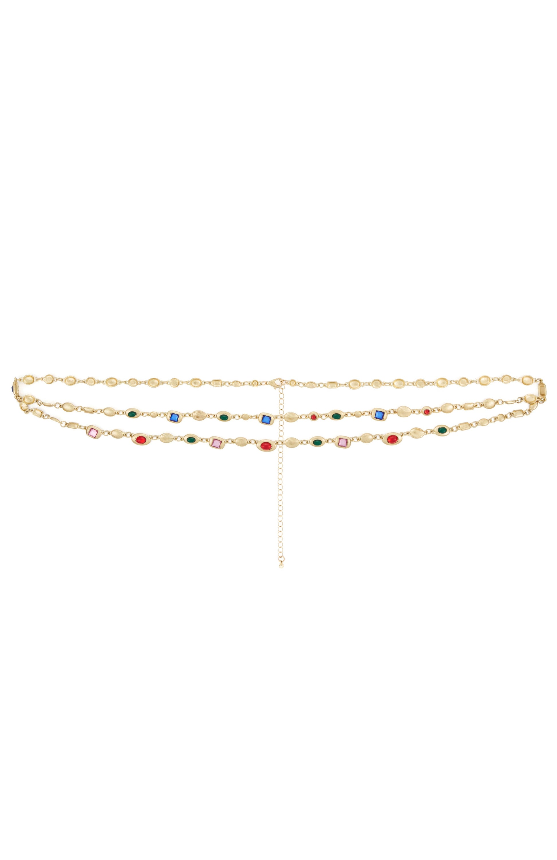 Add some colour to your festival outfit with the Valda Body Chain Gold! Featuring a layered design, gold plated hardware with a coloured beaded design and an adjustable clasp closure.